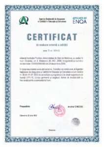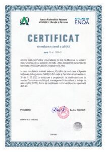 Au fost acreditate programele Limba germană și engleză (Științe ale educației), ciclul I Licență, și Comunicare multilingvă, management intercultural și limbaje de afaceri (120 de credite), ciclul II Master. Certificatele de acreditare au fost înmânate dnei Viorica Lifari, dr., conf.univ. șefa Departamentului Lingvistică germanică și comunicare interculturală, responsabilă de programe. Acreditarea este valabilă 5 ani.